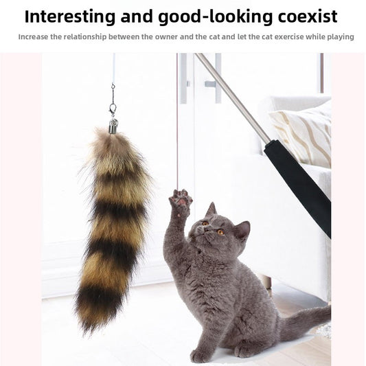 Three-Section Telescopic Feather Cat Toy Teaser Wand Replaceable Head Set