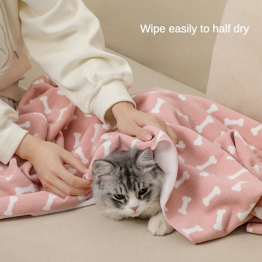 Pet bath towel large cat dog absorbent towel absorbent soft coral fleece