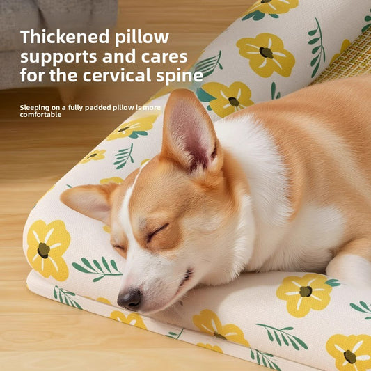 Elevated Cooling Dog Bed Summer Gel Cooling Mat with Neck Protection Removable Washable Cover Thickened Pet Bed for Medium Large Dogs Cats
