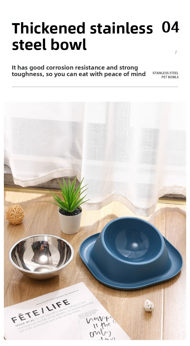 Dog Bowl Double Bowl Ceramic Dog Bowl Anti-Slip Anti-Tip Stainless Steel Pet Bowl Large Capacity Plastic Pet Food Bowl