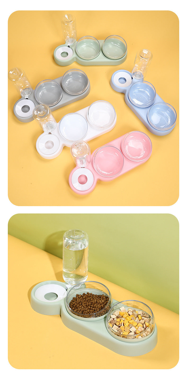 Double Bowl Automatic Cat Feeder and Dog Water Dispenser Adjustable Elevated Pet Bowl Set for Mealtime Comfort and Convenience