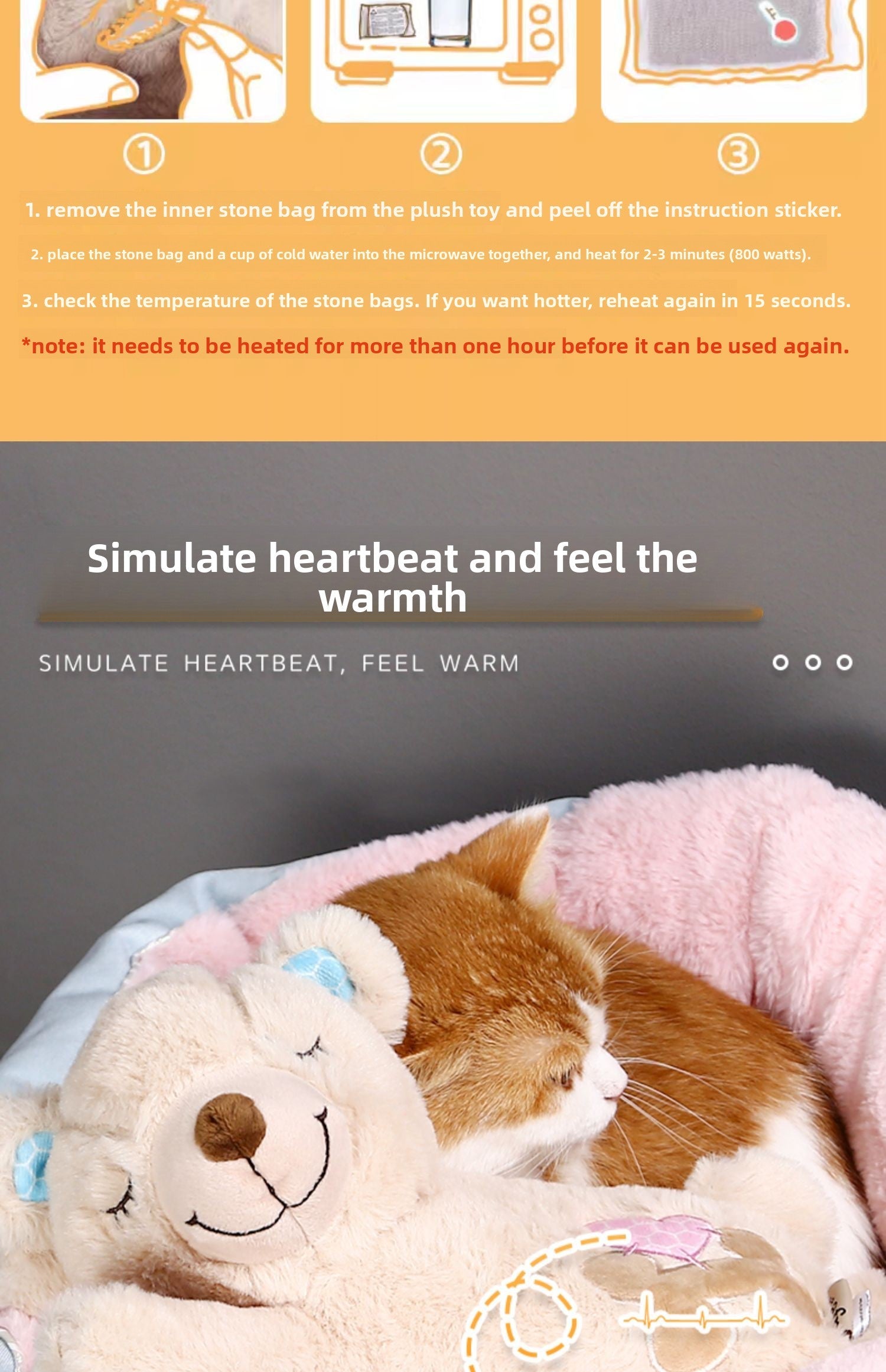 Durable Pet Comfort Pillow Puppy Shape with Simulated Heartbeat Warm Plush Sound Toy