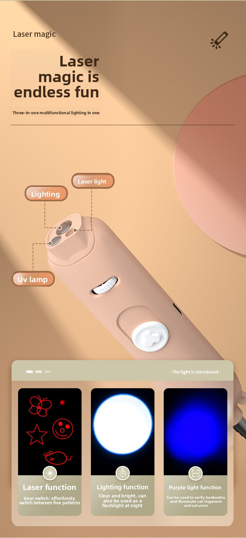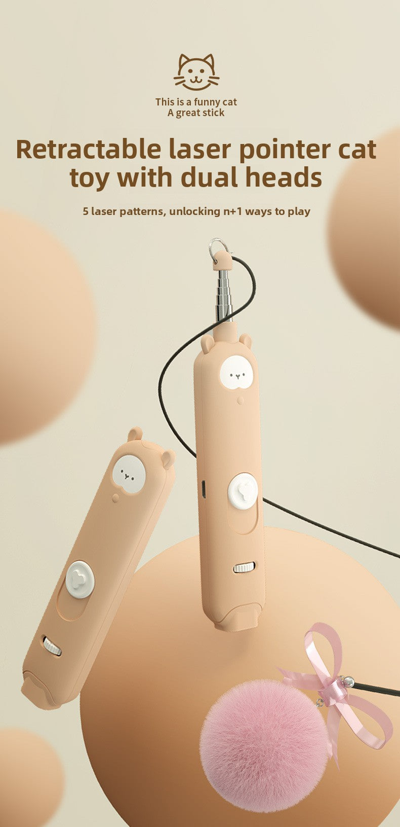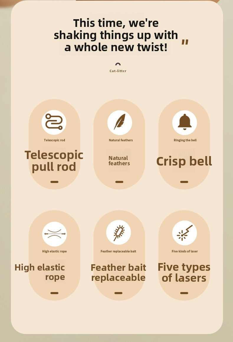 Infrared Laser Cat Teaser Wand with Detachable Feather Bell Interactive Cat Toys for Boredom and Exercise