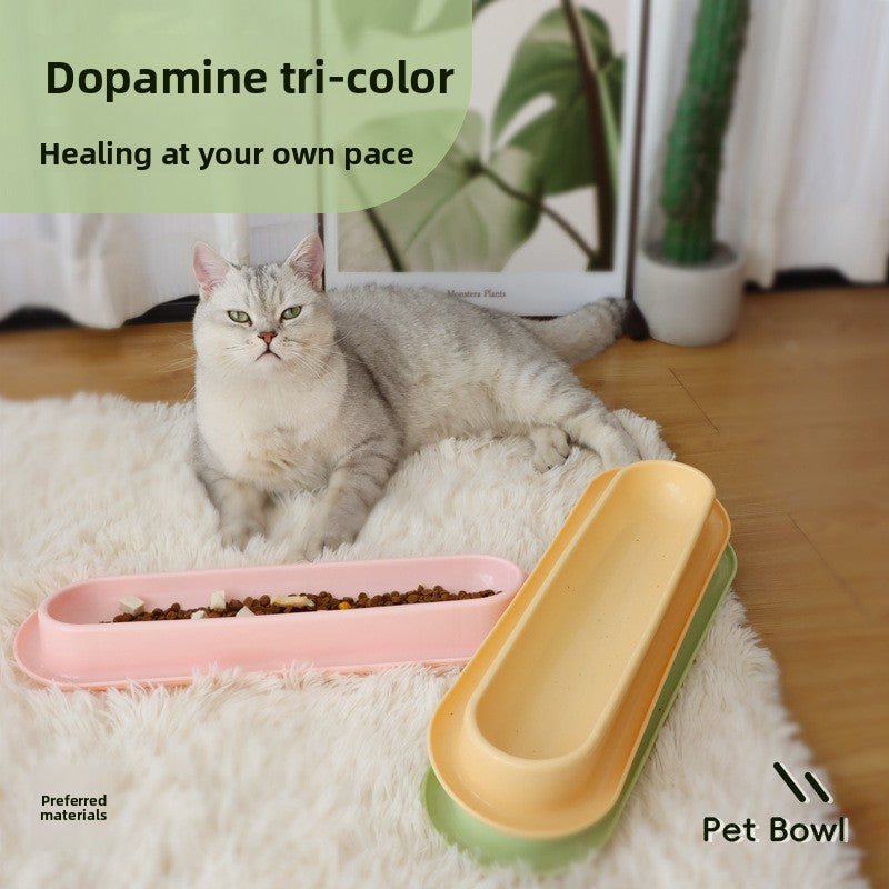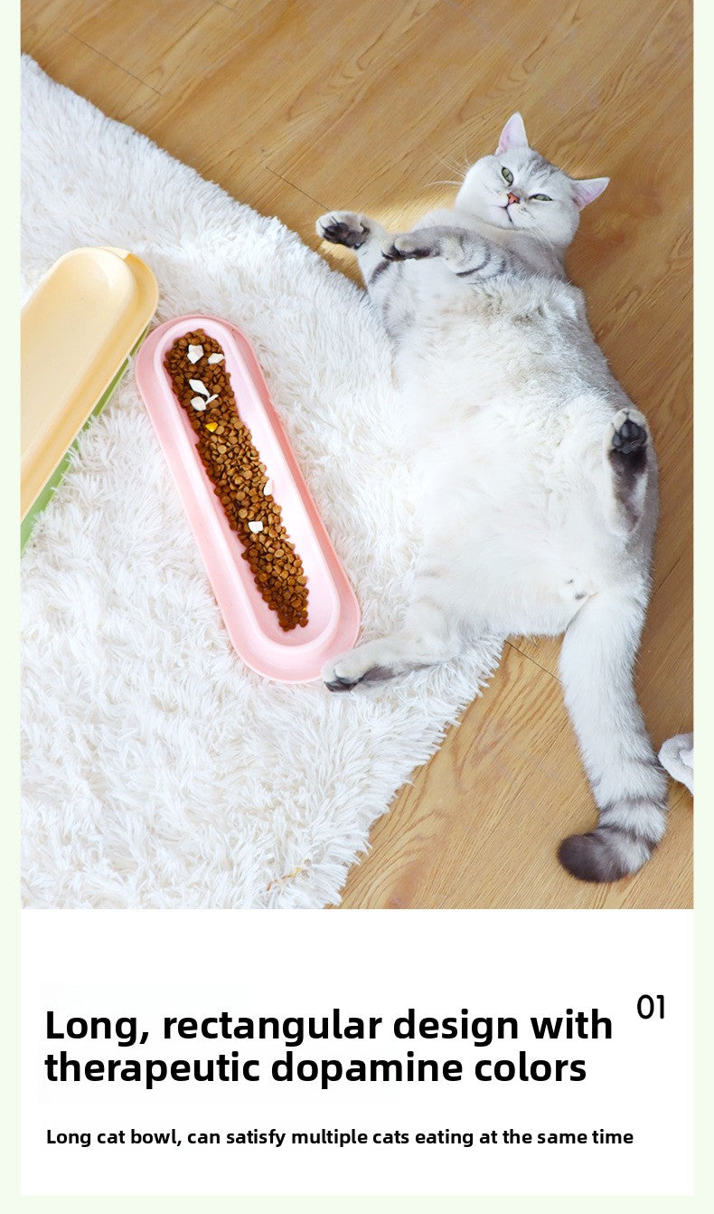 Multi Cat Feeder Long Strip Cat Bowl for Kittens Anti Ant Spill Proof Pet Food and Water Dish Slow Eating Solution