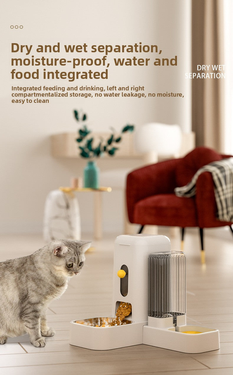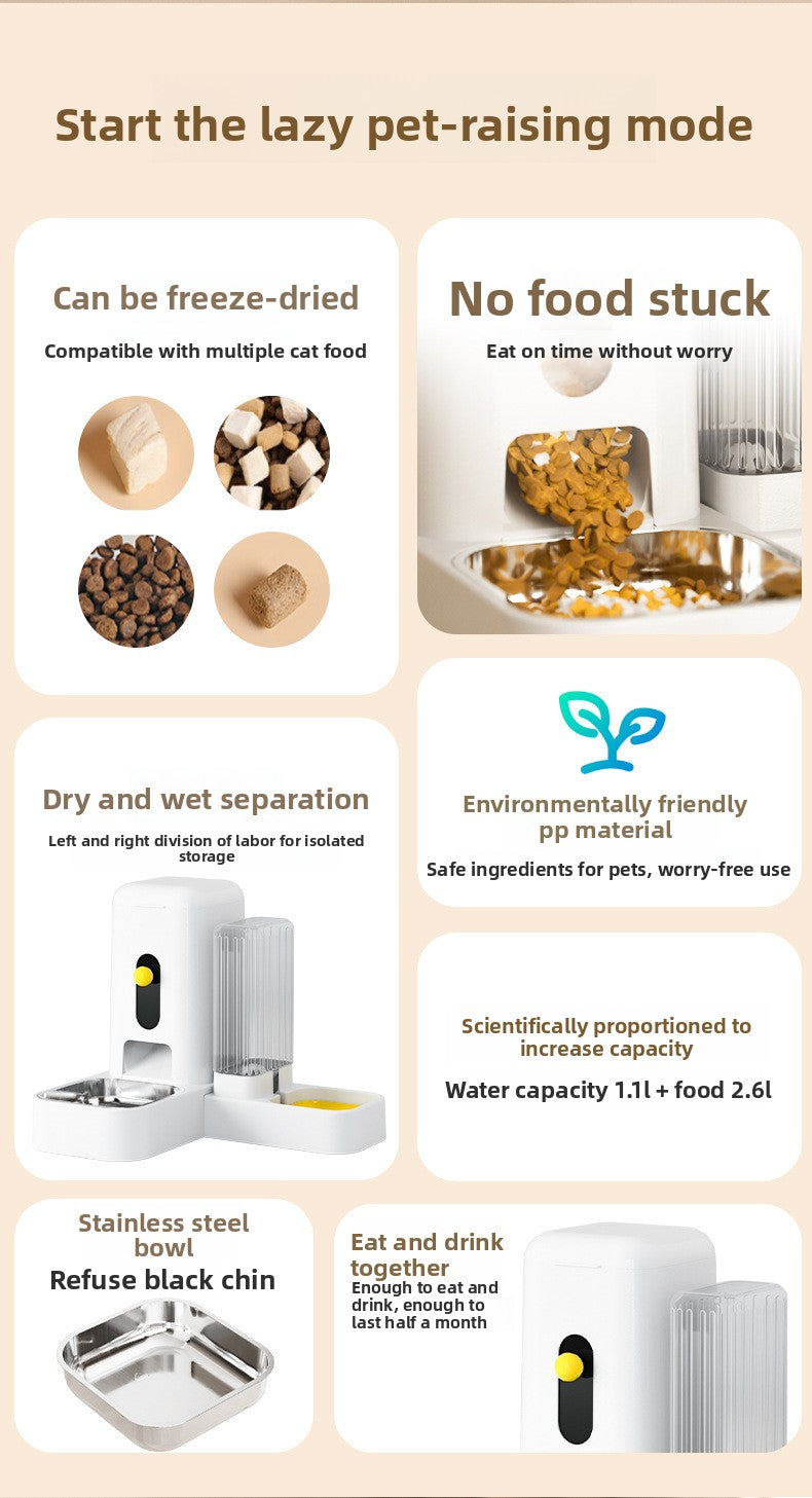 Stainless Steel Cat Bowl Dog Bowl Automatic Water Dispenser with Dry Wet Food Separation Large Capacity Pet Feeder Drinking Fountain Quiet Pump