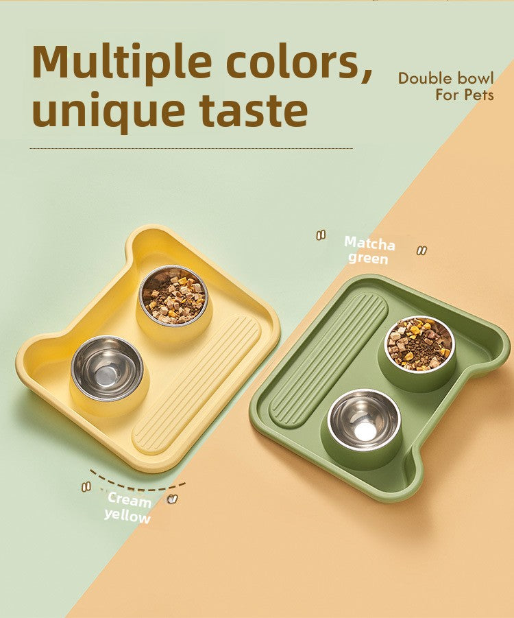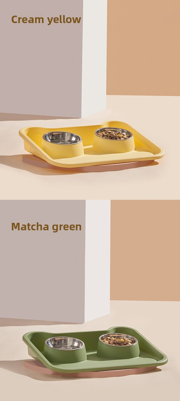 Stainless Steel New Cat Dog Double Bowl Large Diameter Leak Proof Pet Feeder