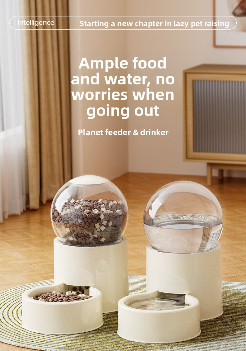 Automatic Cat Dog Water Dispenser with Food Feeder and Grain Storage Bucket