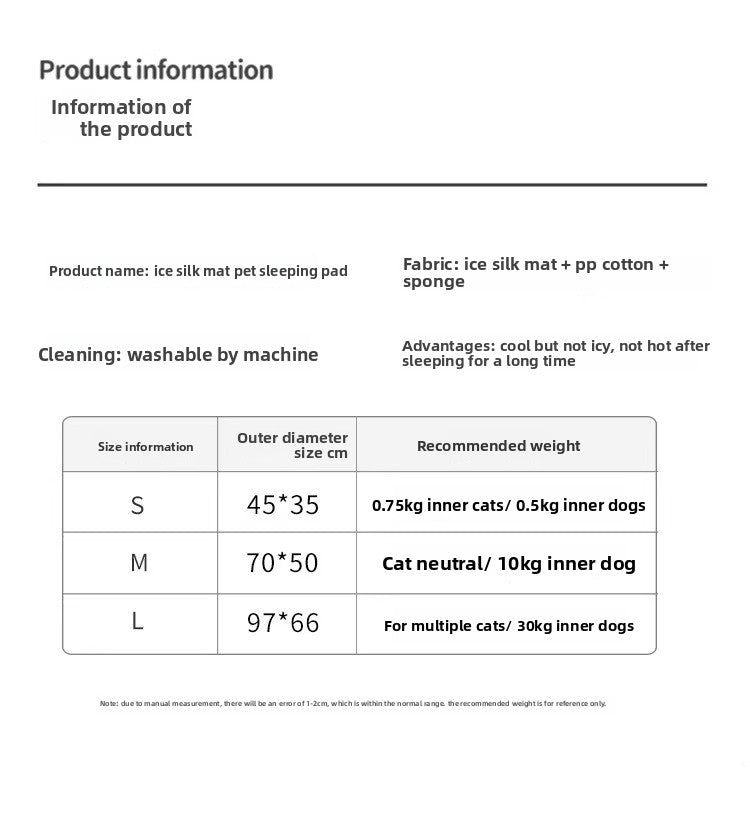 Dog Cat Summer Ice Silk Cooling Mat Pet Bed All Seasons for Small Medium Pets