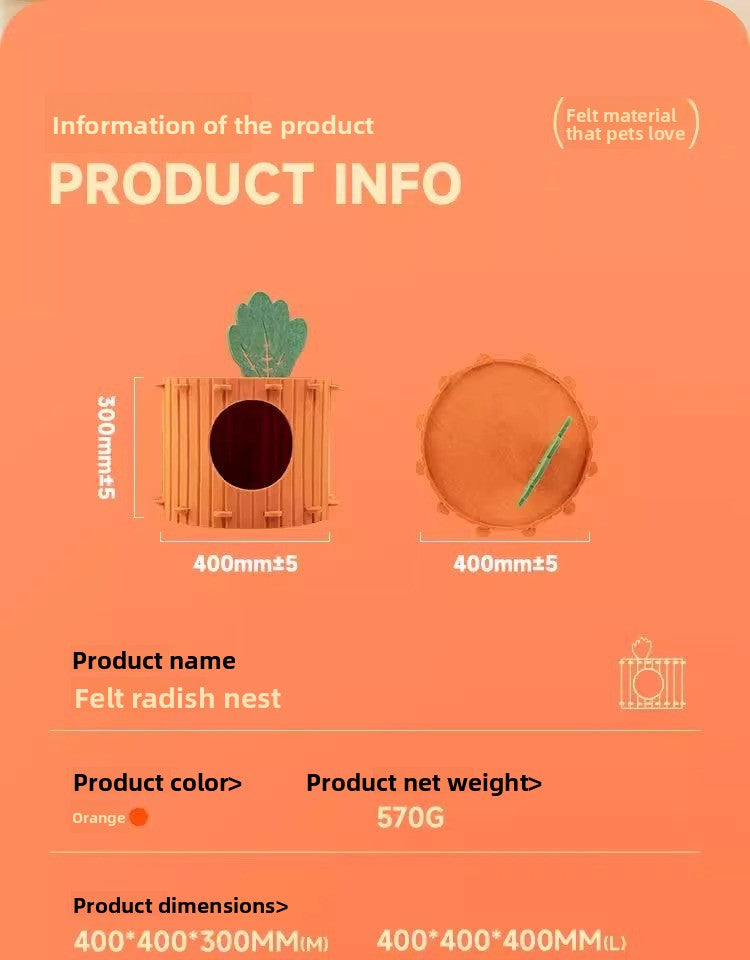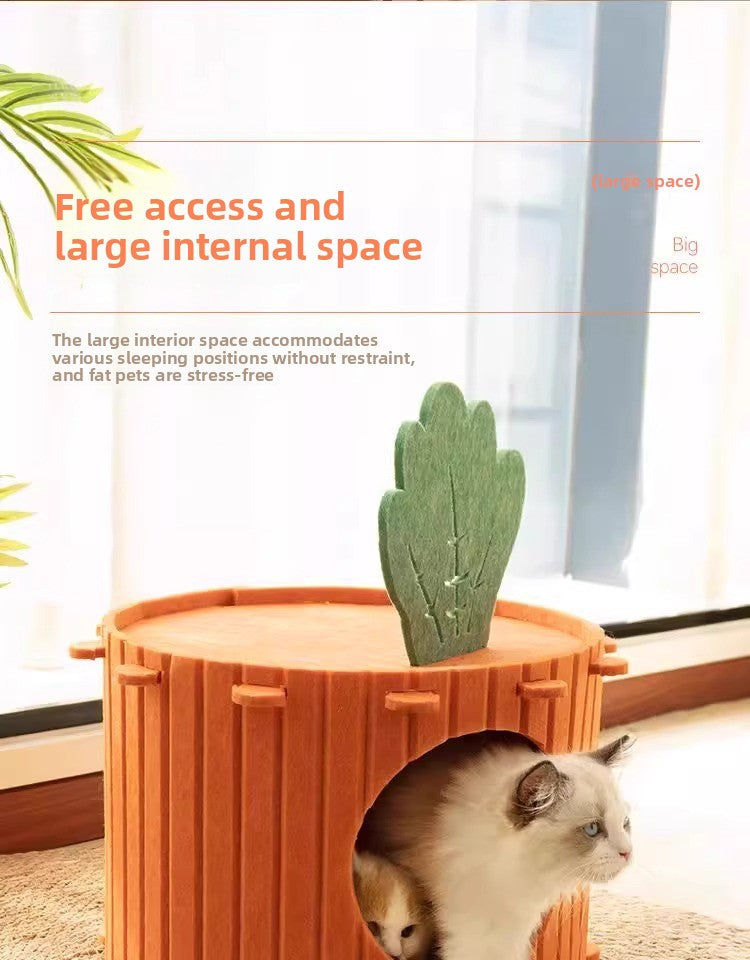 WinterWarm WearProof Felt Cat House Enclosed Bed with Scratching Board