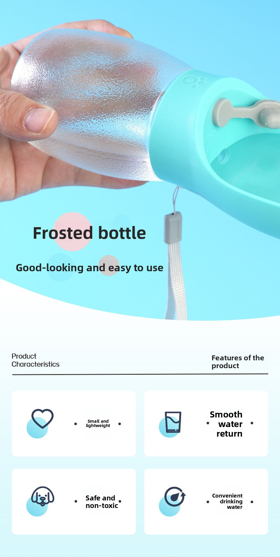 Portable Pet Water Bottle for Dogs and Cats Leak Proof Outdoor Travel Water Dispenser with Foldable Bowl