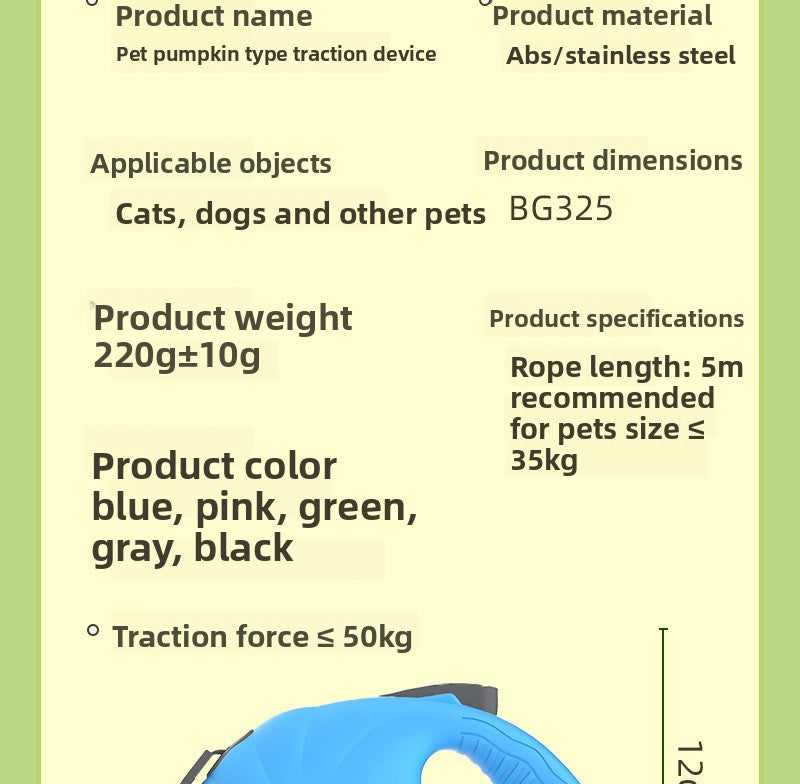 Pumpkin 5M Auto Retractable Explosion Proof Dog Leash for Small Medium Dog Walking