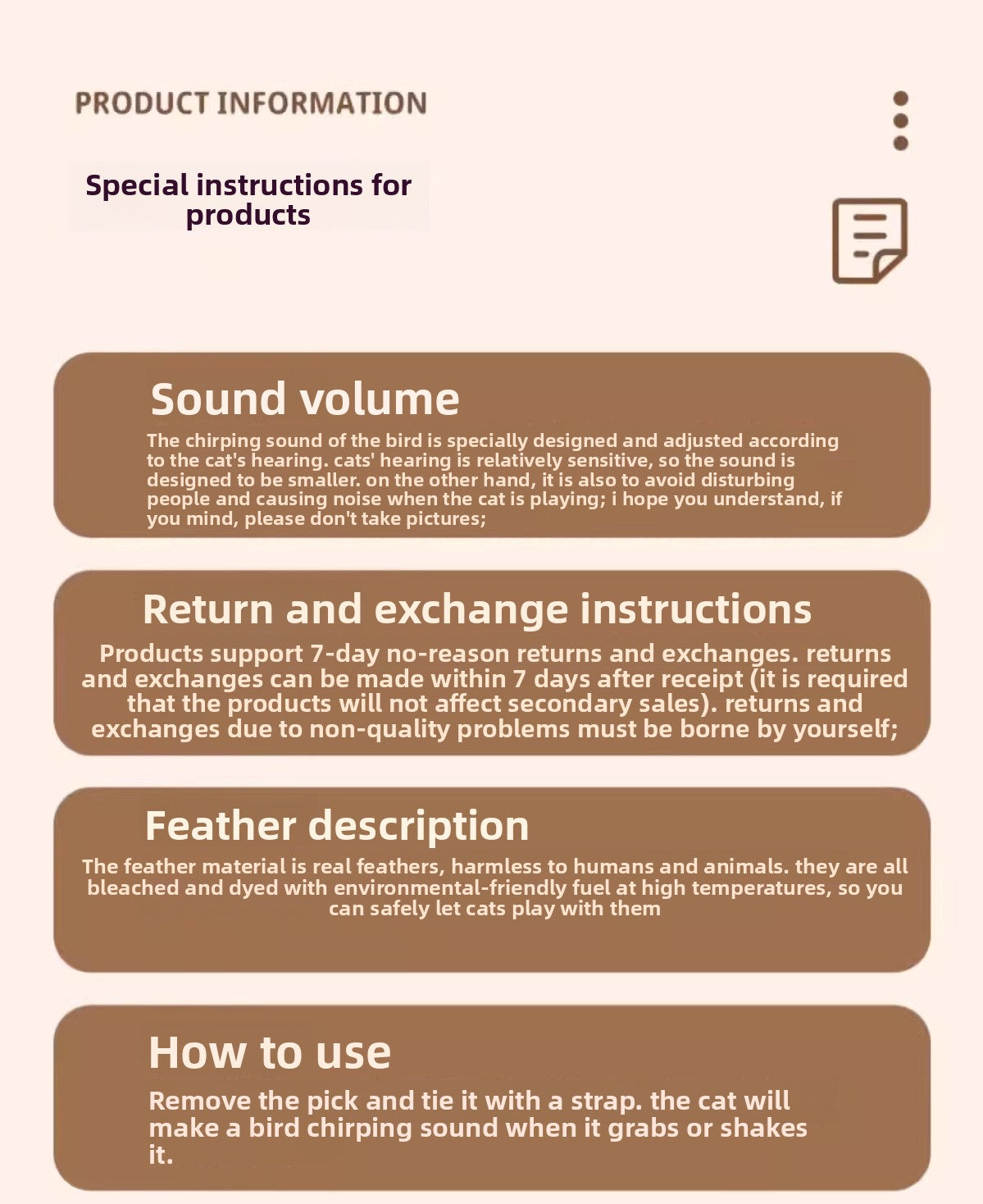 Simulation Bird Sound Cat Toy SelfEntertainment Teaser Wand for EnergyBurning Kitten