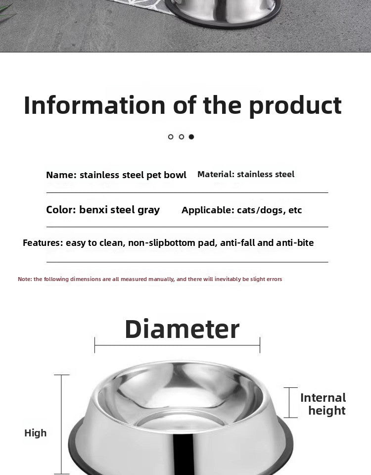 Stainless Steel Anti-Spill Dog Food Bowl Extra Large Non-Slip Rice Dish