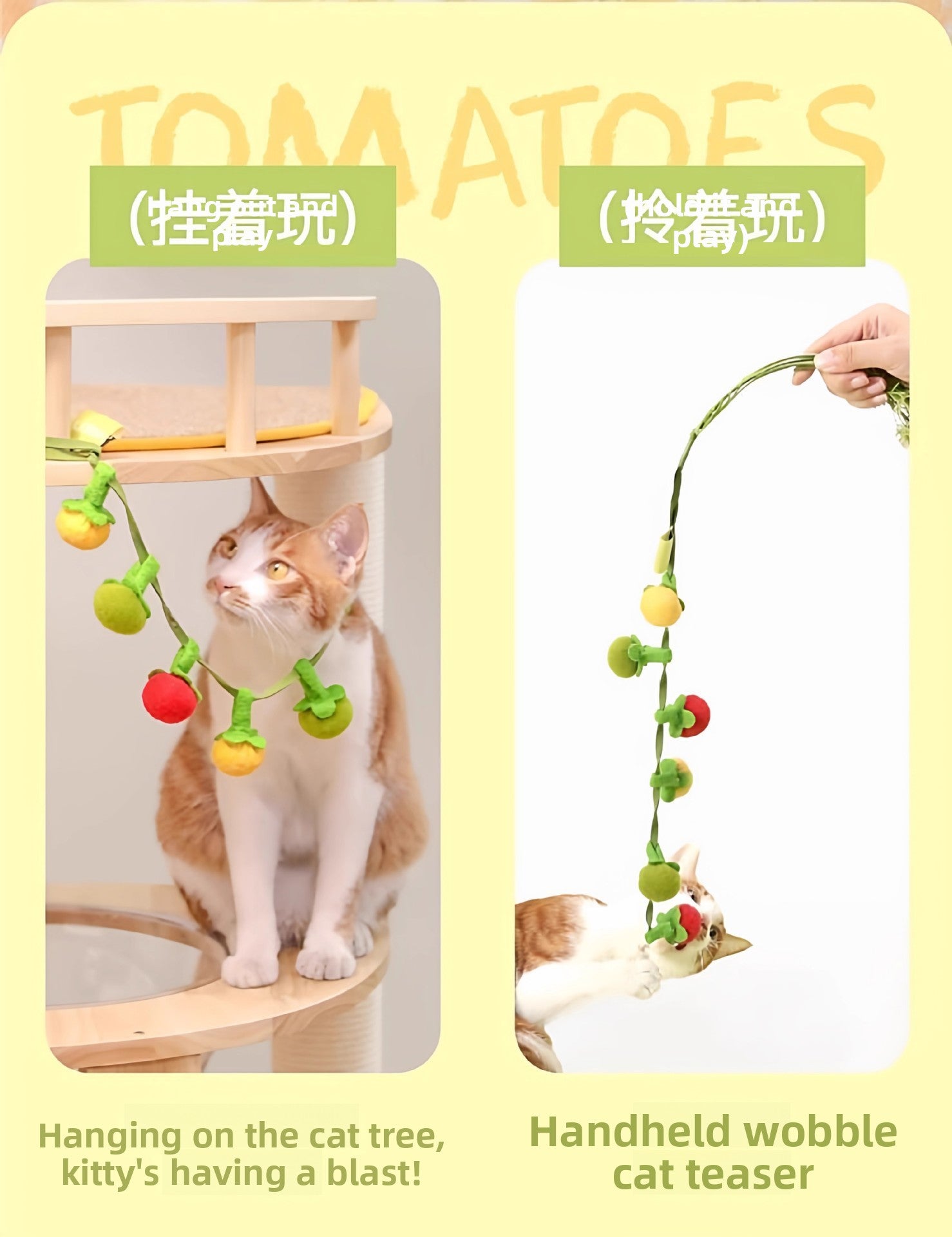 Tomato Shaped Teaser Stick Persimmon String Cat Toy Self Entertainment Boredom Buster with Bell